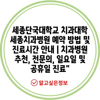 ✅ 세종치과병원의 예약 절차와 진료시간을 쉽게 알아보세요!