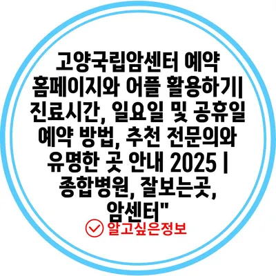 고양국립암센터 예약 홈페이지와 어플 활용하기| 진료시간, 일요일 및 공휴일 예약 방법, 추천 전연락와 유명한 곳 공지 2025 | 종합병원, 잘보는곳, 암센터에 대해 자주 묻는 질문 TOP 5