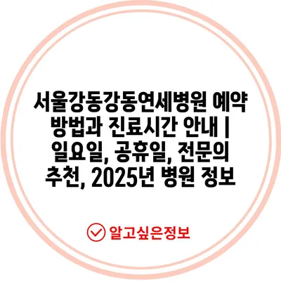 서울강동강동연세병원 예약 방법과 진료시간 공지 | 일요일, 공휴일, 전연락 추천, 2025년 병원 정보 에 대해 자주 묻는 질문 TOP 5