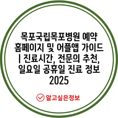 목포국립목포병원 예약 홈페이지 및 어플앱 설명서 | 진료시간, 전연락 추천, 일요일 공휴일 진료 정보 2025에 대해 소개합니다.
