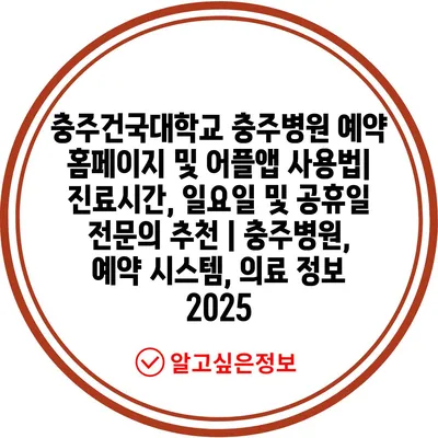 충주건국대학교 충주병원 예약 홈페이지 및 어플앱 사용법| 진료시간, 일요일 및 공휴일 전연락 추천 | 충주병원, 예약 시스템, 의료 정보 2025에 대해 알아보겠습니다.