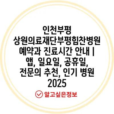 인천부평 상원의료재단부평힘찬병원 예약과 진료시간 공지 | 앱, 일요일, 공휴일, 전연락 추천, 인기 병원 2025 에 대해 자주 묻는 질문 TOP 5