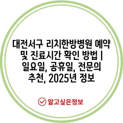 대전서구 리치한방병원 예약 및 진료시간 확인 방법 | 일요일, 공휴일, 전연락 추천, 2025년 정보 에 대해 자주 묻는 질문 TOP 5