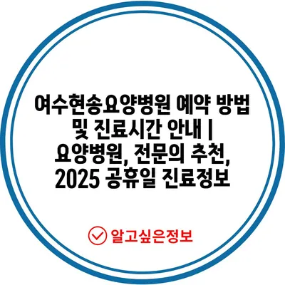 여수현송요양병원 예약 방법 및 진료시간 공지 | 요양병원, 전연락 추천, 2025 공휴일 진료정보 에 대해 자주 묻는 질문 TOP 5