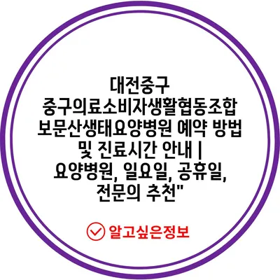 대전 중구의료소비자생활협동조합의 예약 방법을 지금 알아보세요!
