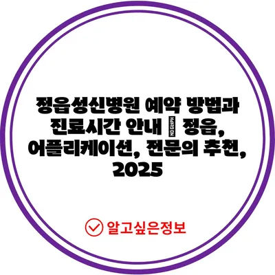 정읍성신병원 예약 방법과 진료시간 안내 | 정읍, 어플리케이션, 전문의 추천, 2025