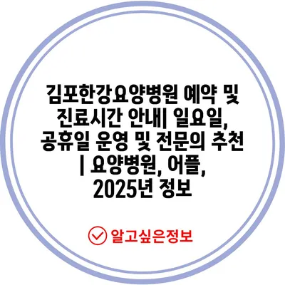 김포한강요양병원 예약 및 진료시간 안내| 일요일, 공휴일 운영 및 전문의 추천 | 요양병원, 어플, 2025년 정보