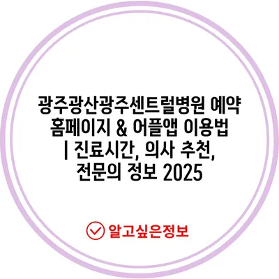 ✅ 광주광산광주센트럴병원 예약 방법을 간편하게 확인해 보세요.