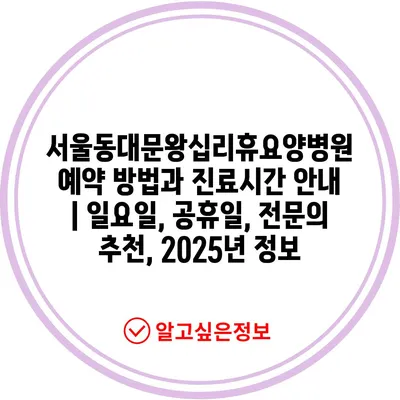 서울동대문왕십리휴요양병원 예약 방법과 진료시간 안내 | 일요일, 공휴일, 전문의 추천, 2025년 정보
