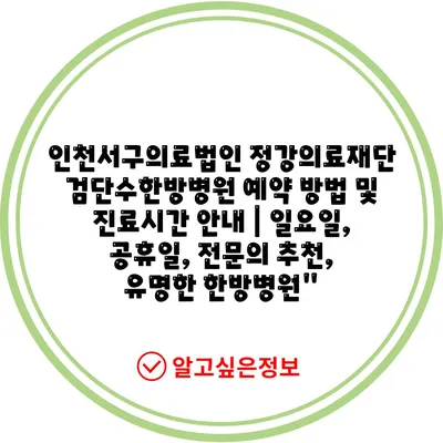 ✅ 정강의료재단 검단수한방병원의 예약 방법과 진료시간을 빠르게 알아보세요.