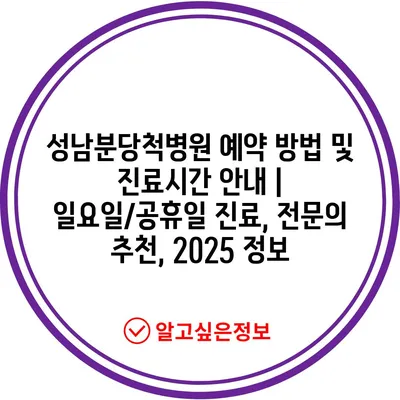 성남분당척병원 예약 방법 및 진료시간 공지 | 일요일/공휴일 진료, 전연락 추천, 2025 정보 에 대해 자주 묻는 질문 TOP 5