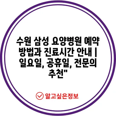 ✅ 수원 삼성 요양병원의 예약 방법과 진료시간을 알아보세요!