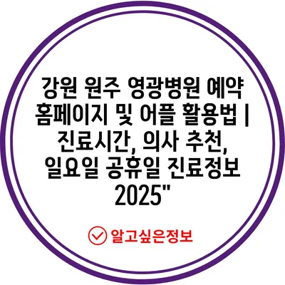강원 원주 영광병원 예약 홈페이지 및 어플 활용법 | 진료시간, 의사 추천, 일요일 공휴일 진료정보 2025에 대해 알아보겠습니다.