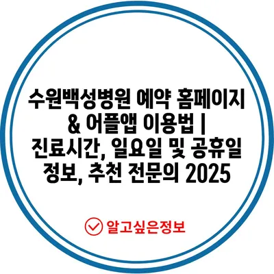 ✅ 수원백성병원 예약 방법과 운영시간을 자세히 알아보세요!