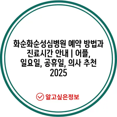 ✅ 화순화순성심병원의 예약 절차와 진료 시간에 대해 자세히 알아보세요.