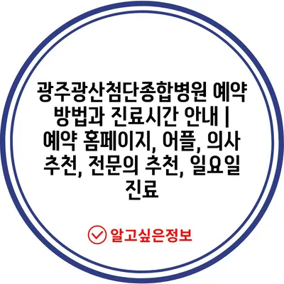 광주광산첨단종합병원 예약 방법과 진료시간 공지 | 예약 홈페이지, 어플, 의사 추천, 전연락 추천, 일요일 진료 에 대해 자주 묻는 질문 TOP 5