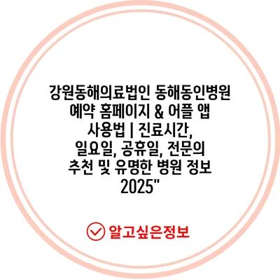 강원동해의료법인 동해동인병원 예약 홈페이지 & 어플 앱 사용법 | 진료시간, 일요일, 공휴일, 전연락 추천 및 유명한 병원 정보 2025