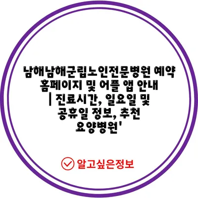 ✅ 남해남해군립노인전문병원의 예약 절차 및 앱 사용법을 알아보세요.