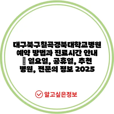 대구북구칠곡경북대학교병원 예약 방법과 진료시간 공지 | 일요일, 공휴일, 추천 병원, 전연락 정보 2025 에 대해 자주 묻는 질문 TOP 5