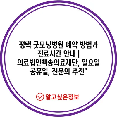 평택 굿모닝병원 예약 방법과 진료시간 공지 | 의료법인백송의료재단, 일요일 공휴일, 전연락 추천에 대해 자주 묻는 질문 TOP 5