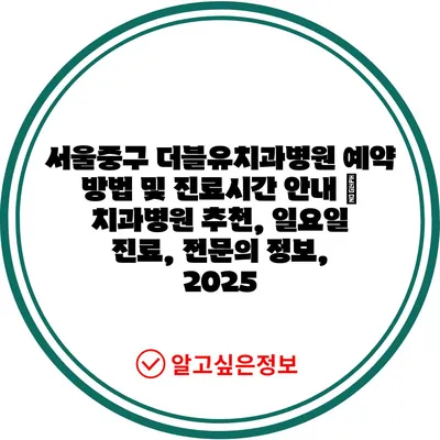 서울중구 더블유치과병원 예약 방법 및 진료시간 공지 | 치과병원 추천, 일요일 진료, 전연락 정보, 2025에 대해 자주 묻는 질문 TOP 5