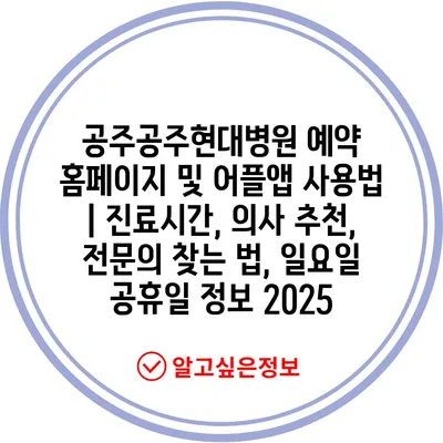 공주공주현대병원 예약 홈페이지 및 어플앱 사용법 | 진료시간, 의사 추천, 전연락 찾는 법, 일요일 공휴일 정보 2025 에 대해 자주 묻는 질문 TOP 5
