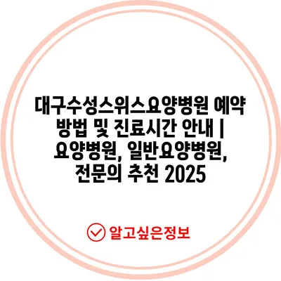 ✅ 대구수성스위스요양병원의 예약 방법과 진료시간을 알아보세요.