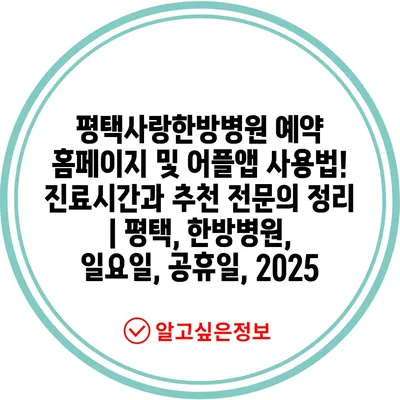 ✅ 평택사랑한방병원의 예약 방법과 팁을 지금 바로 알아보세요!
