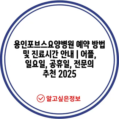 ✅ 용인포브스요양병원의 예약 방법과 진료시간을 알아보세요.