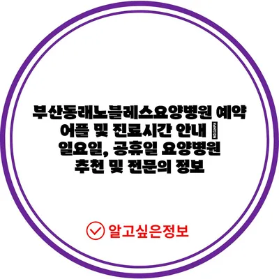 ✅ 부산동래노블레스요양병원의 진료시간과 예약 방법을 알아보세요.