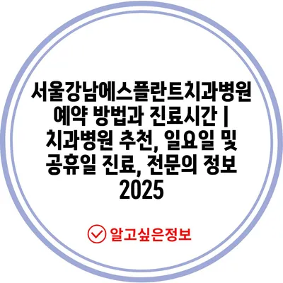 ✅ 서울강남에스플란트치과병원 예약 방법과 진료시간을 자세히 알아보세요.