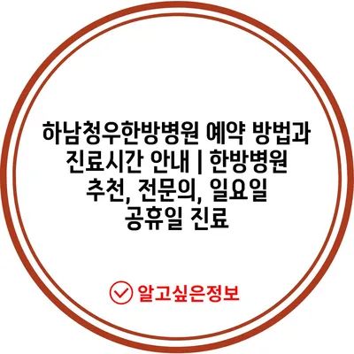 ✅ 하남청우한방병원의 예약 방법을 자세히 알아보세요.