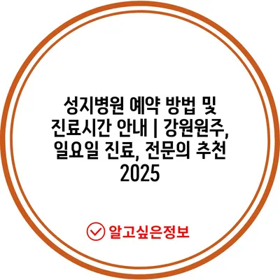 성지병원 예약 방법 및 진료시간 안내 | 강원원주, 일요일 진료, 전문의 추천 2025