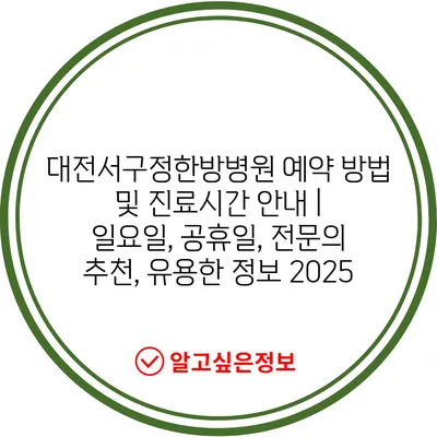 대전서구정한방병원 예약 방법 및 진료시간 공지 | 일요일, 공휴일, 전연락 추천, 유용한 정보 2025 에 대해 자주 묻는 질문 TOP 5