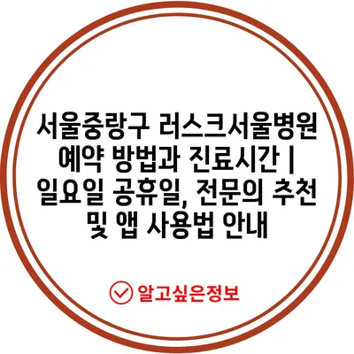 ✅ 서울중랑구 러스크서울병원의 진료시간과 예약 방법을 지금 바로 알아보세요!