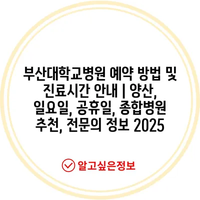 부산대학교병원 예약 방법 및 진료시간 공지 | 양산, 일요일, 공휴일, 종합병원 추천, 전연락 정보 2025