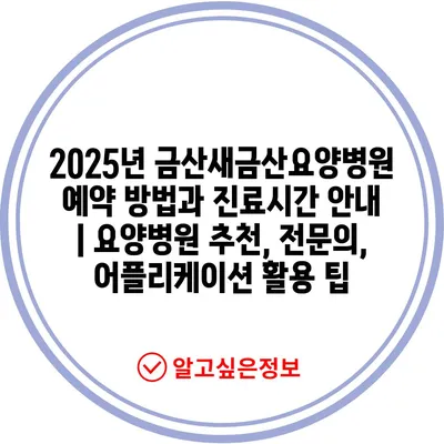 2025년 금산새금산요양병원 예약 방법과 진료시간 공지 | 요양병원 추천, 전연락, 어플리케이션 활용 팁 에 대해 자주 묻는 질문 TOP 5