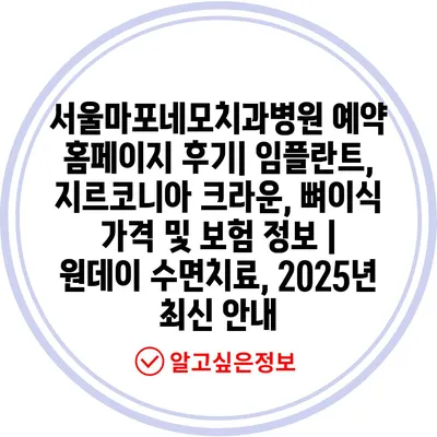 서울마포네모치과병원 예약 홈페이지 후기| 임플란트, 지르코니아 크라운, 뼈이식 가격 및 보험 정보 | 원데이 수면치료, 2025년 최신 안내