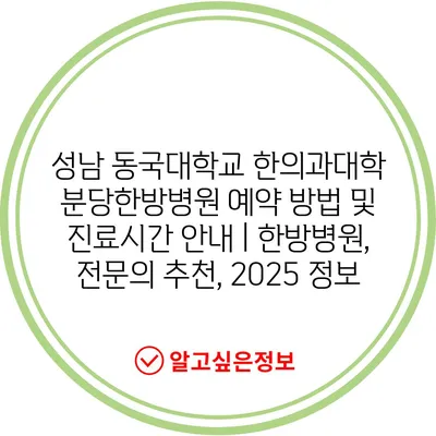 성남 동국대학교 한의과대학 분당한방병원의 진료시간과 예약 방법을 자세히 알아보세요.