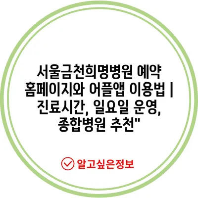 서울금천희명병원 예약 홈페이지와 어플앱 이용법 | 진료시간, 일요일 운영, 종합병원 추천 에 대해 자주 묻는 질문 TOP 5