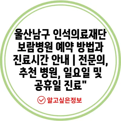 ✅ 울산남구 보람병원의 예약 방법과 진료시간을 지금 바로 알아보세요!