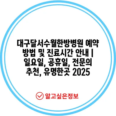 대구달서수월한방병원 예약 방법 및 진료시간 공지 | 일요일, 공휴일, 전연락 추천, 유명한곳 2025에 대해 소개해 알려드리겠습니다.