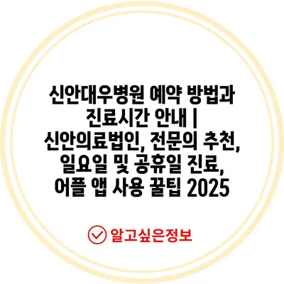 신안대우병원 예약 방법과 진료시간 공지 | 신안의료법인, 전연락 추천, 일요일 및 공휴일 진료, 어플 앱 사용 꿀팁 2025 에 대해 자주 묻는 질문 TOP 5