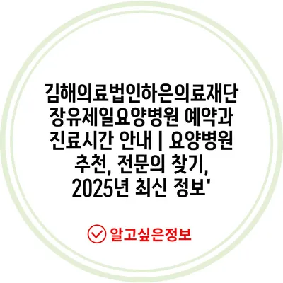 김해의료법인하은의료재단 장유제일요양병원 예약과 진료시간 공지 | 요양병원 추천, 전연락 찾기, 2025년 최신 정보’에 대해 자주 묻는 질문 TOP 5