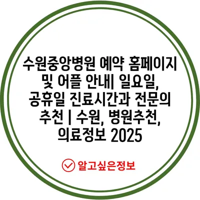 수원중앙병원 예약 홈페이지 및 어플 공지| 일요일, 공휴일 진료시간과 전연락 추천 | 수원, 병원추천, 의료정보 2025