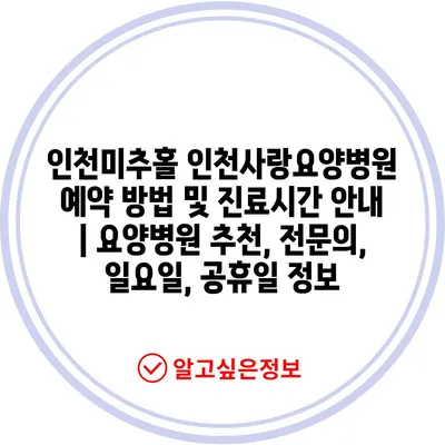 ✅ 인천사랑요양병원의 예약 방법과 진료시간을 자세히 알아보세요.