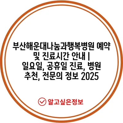 부산해운대나눔과행복병원 예약 및 진료시간 공지 | 일요일, 공휴일 진료, 병원 추천, 전연락 정보 2025 에 대해 자주 묻는 질문 TOP 5