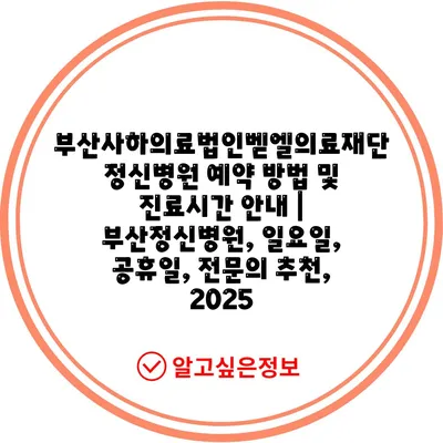 부산사하의료법인벧엘의료재단 정신병원 예약 방법 및 진료시간 공지 | 부산정신병원, 일요일, 공휴일, 전연락 추천, 2025 에 대해 자주 묻는 질문 TOP 5
