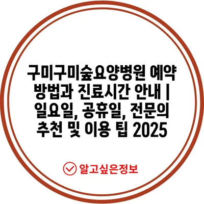구미구미숲요양병원 예약 방법과 진료시간 공지 | 일요일, 공휴일, 전연락 추천 및 이용 팁 2025 에 대해 자주 묻는 질문 TOP 5