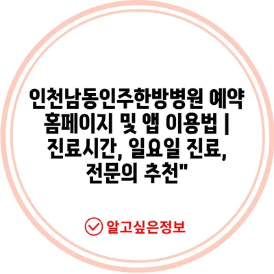 ✅ 인천남동인주한방병원 진료 예약 방법을 자세히 알아보세요.